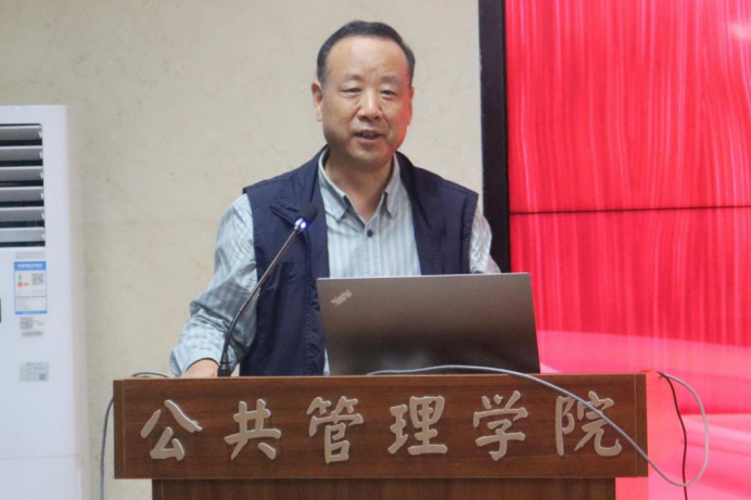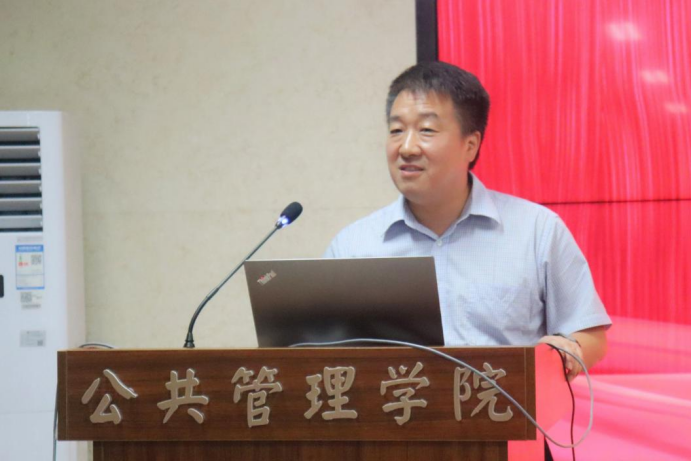 教师代表席恒教授解读了西大“公诚勤朴”的校训以及“正学善行”的院训,希望新生同学可以深刻理解西大精神和公管精神,并从中汲取养分和力量。同时,席教授从学什么、怎么学、学到什么程度等角度出发论述了大学学习的特点并提出了对同学们专业学习上的基本要求。