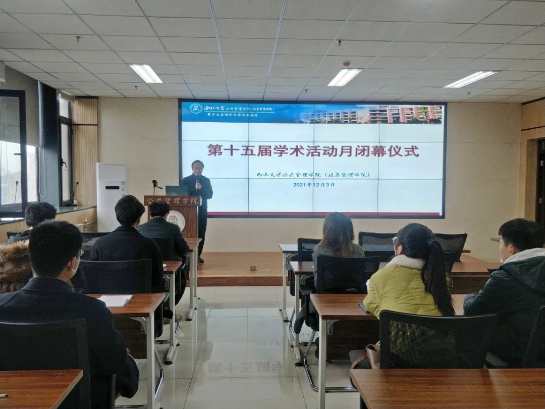 12月3日下午,565net必赢第十五届研究生学术活动月闭幕仪式在西学楼1305多媒体教室举办。565net必赢科研副院长翟绍果,团委副书记、辅导员杨嘉仪出席闭幕仪式。闭幕式由院研究生会主席团成员郑琰主持。