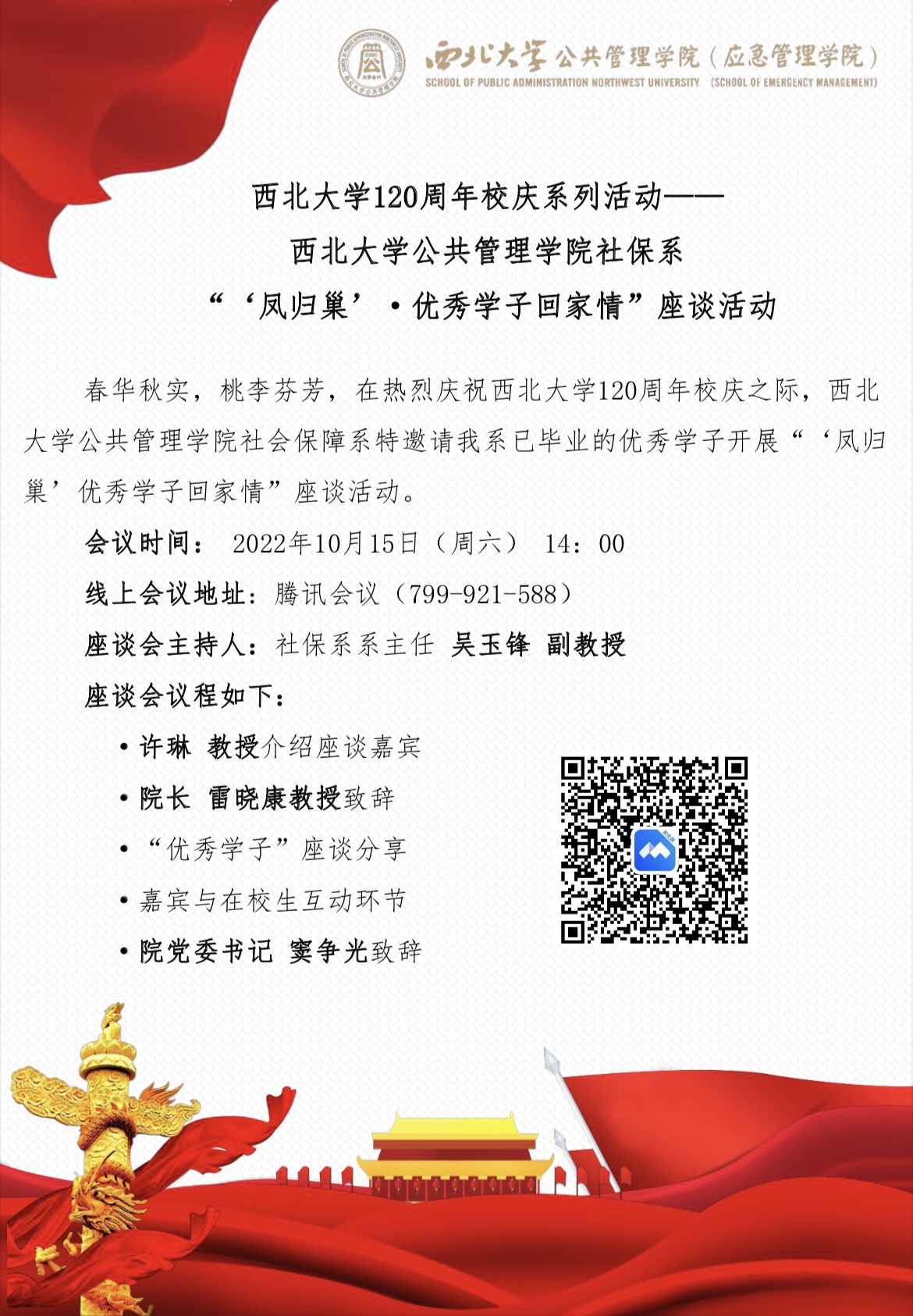 西北大学120周年校庆系列活动—— 西北大学565net必赢社保系 “‘归巢’·优秀学子回家情”座谈活动