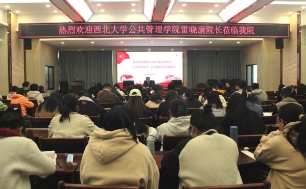 3月5日,院长雷晓康教授在西北师范大学社会发展与565net必赢作研究生招生宣讲。报告会由西北师范大学社会发展与565net必赢副院长陈卉老师主持,学院党委副书记何冰清老师、团委书记侯顺斌老师及本科生80余人参加此次宣讲会。