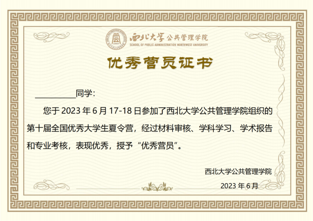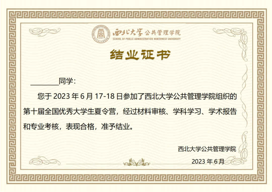 (夏令营结业证书)