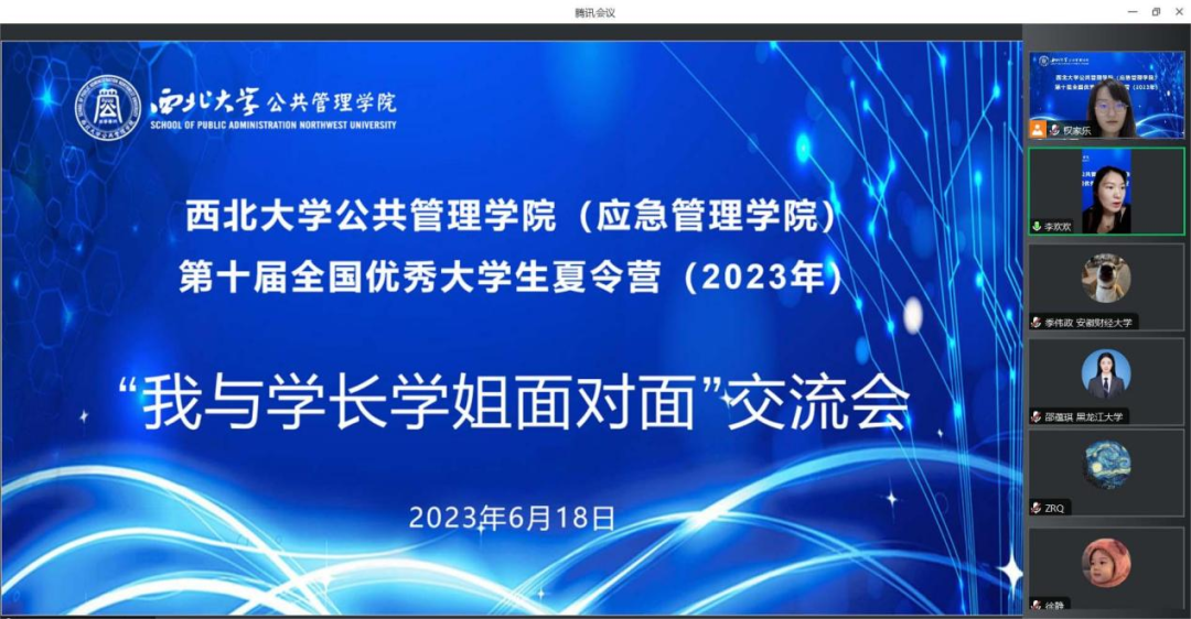 面试结束后举行了“我与学长学姐面对面”的交流活动,我院优秀研究生代表刘泓贤、杨一哲、杨才玉、朱梦帆、李欢欢、阴婕、刘怡瑶、梁竞文从学院风采、专业特色、校园生活、科研氛围等方面为营员们进行了生动的经验分享。