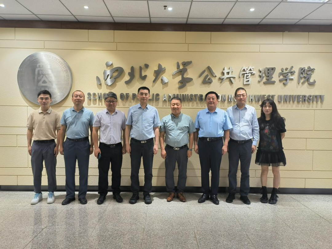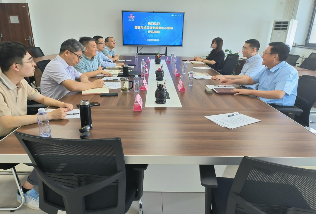 2023年7月4日上午,西安市机关事务服务中心副主任孙刚、综合管理处处长黄维、综合管理处工作人员王旭一行来我院调研合作成立西北大学西安机关事务研究中心事宜,我院院长雷晓康、副院长靳洪涛,公共行政学系司林波教授、郭斌副教授、马子博老师参加此次会议,会议由雷晓康院长主持。