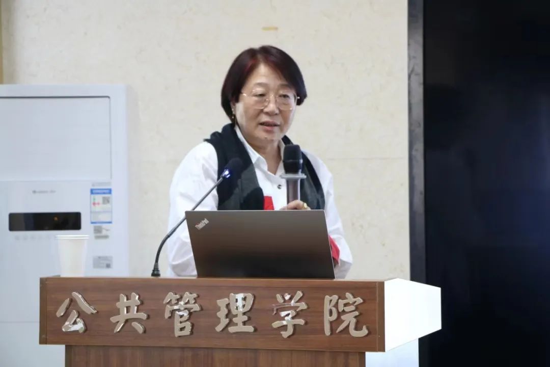 最后,鲍静教授从师资与课程、学生培养、学术科研、老师学生能力等方面进行讲述,旨在启发在场听众对于学习和教育的思考。她引用中共中央发布的条例“第二十七条 干部教育培训应当根据内容要求和干部特点,综合运用讲授式、研讨式、案例式、模拟式、体验式、访谈式、行动学习等方式教学相长、学学相长”,作为本次主题报告会的结尾。