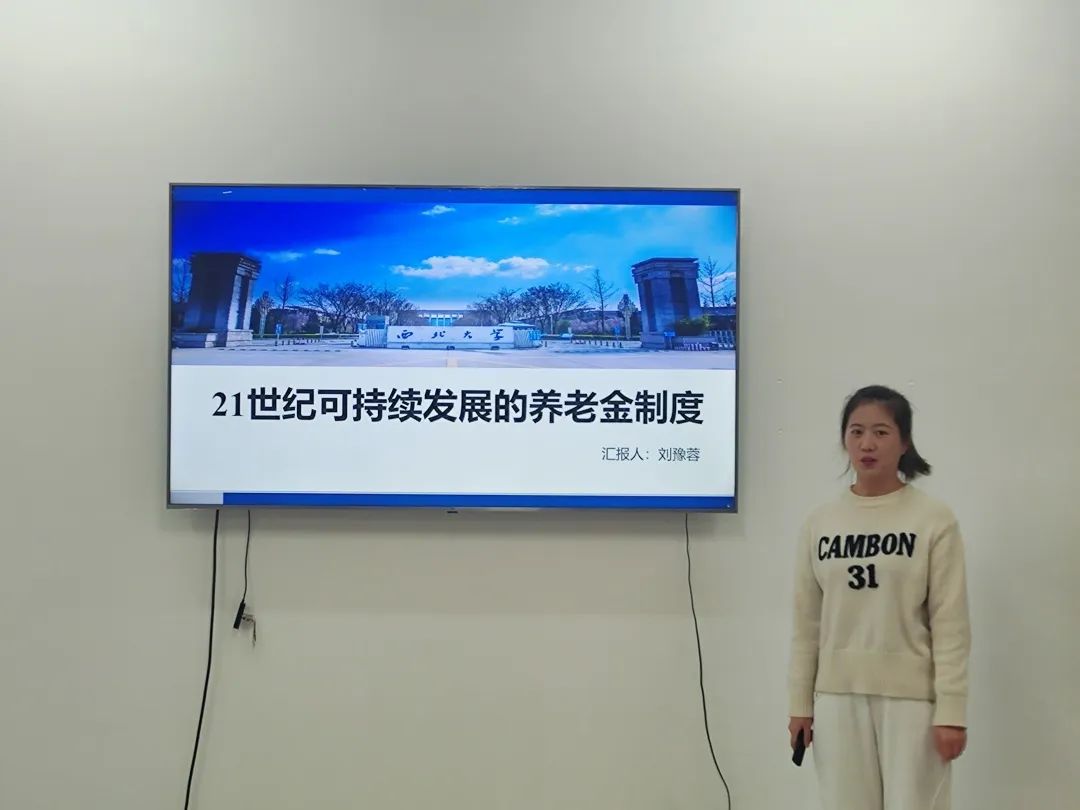 2022级社会保障专业硕士研究生刘豫蓉分享的书目是罗伯特·霍尔茨曼的《21世纪可持续发展的养老金制度》,她的汇报从写作背景和目的、目录介绍、核心内容、批评反思和现实启示展开。她首先对本书的写作背景和目的以及目录介绍进行了简要分享。紧接着,她重点阐释了本书13个章节的主要观点,并提出各章从不同的角度探讨了养老金制度的可持续发展问题,尤其是从政治和经济学的角度,通过各种计量和精算模型,以不同的国家和地区为例,为重新审视和改革养老金制度提供了最新的思考。最后,她提出本书有很强的现实运用价值,可以有效探讨既能服务于经济发展,又能防止老年贫困的养老金制度。