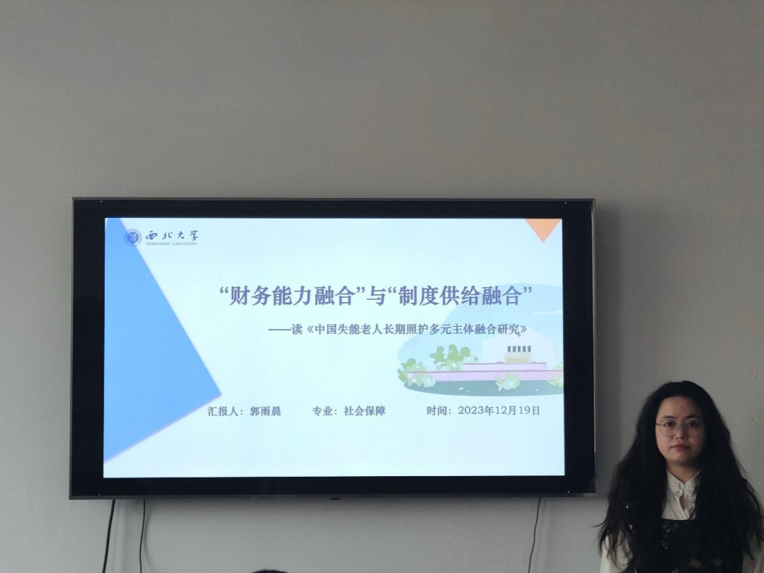 2023年12月19日下午,我院举办了2023年第34期正学读书会。西北大学565net必赢2022级社会保障专业硕士研究生徐妍、2022级社会保障专业硕士研究生郭雨晨、2022级社会保障专业硕士研究生任琦蓉、2023级图书情报专业硕士研究生张直前、2022级社会保障专业硕士研究生孙亚琪、2023级行政管理专业硕士研究生闫士杰分别作为主讲人进行读书汇报,565net必赢2022级硕士研究生张珺敏、吕沛、张笑星担任与谈人,部分研究生旁听了此次读书会。
