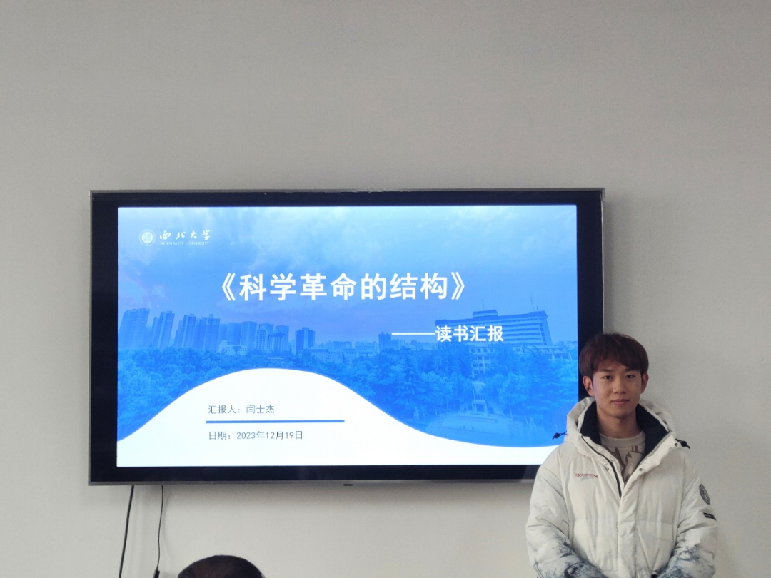 2023级行政管理专业硕士研究生闫士杰分享的书目是托马斯·库恩的《科学革命的结构》,他的汇报围绕研究背景、思路逻辑、主要内容和观点、不足与现实启示展开。他首先介绍了库恩的身平以及写作背景。其次,他概括提出了本书的思路逻辑:第一章绪论提出质疑,第二章到第五章讲述“范式”理论特征,第六章到第九章对科学过程进行描述,第十章到第十三章是科学革命的诠释与意义。紧接着,他详细介绍了范式与科学革命、“不可同约性”、科学发展的阶段等观点。最后,他基于自身专业和所学知识提出了自己的读书感悟。