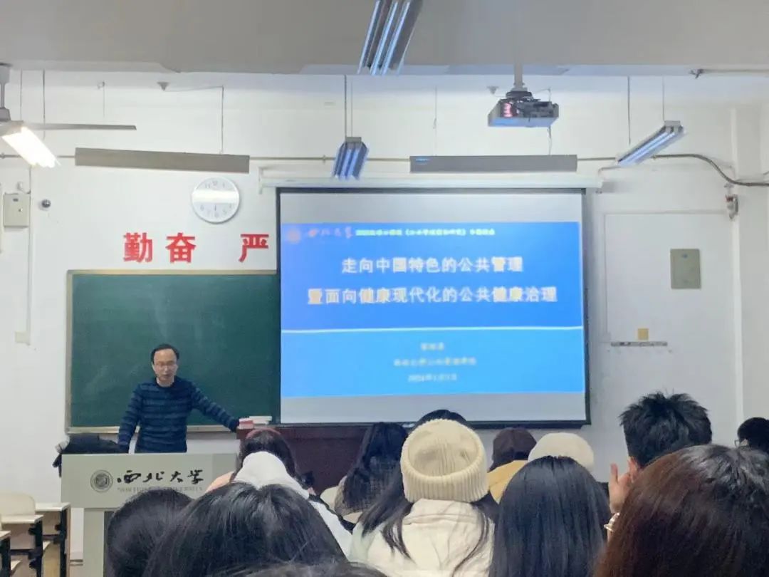 2024年1月3日晚,西北大学565net必赢翟绍果教授为我院2023级全体硕士研究生作了题为“走向中国特色的公共管理暨面向健康现代化的公共健康治理”的专题讲座。