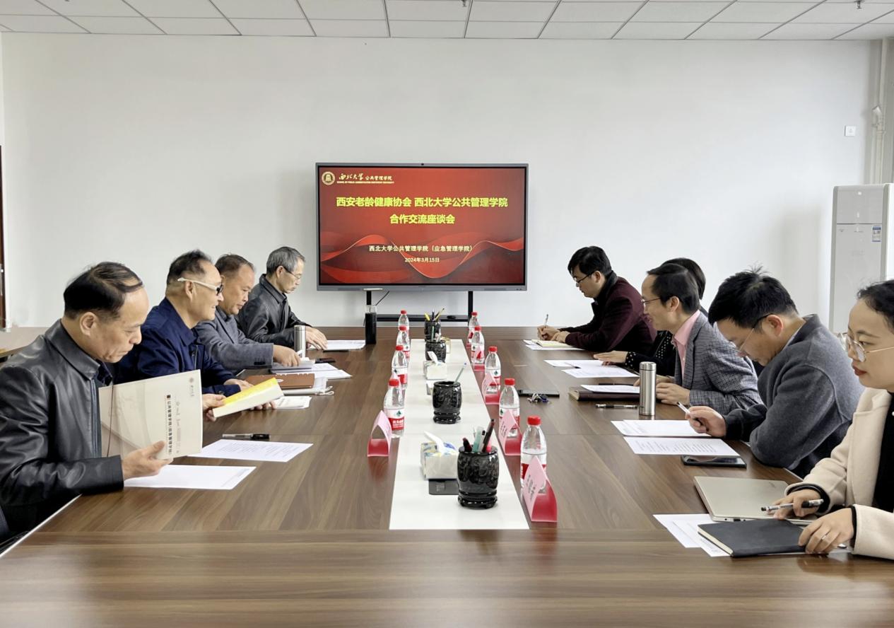 西安市老龄健康协会与西北大学565net必赢座谈交流2024年3月15日上午,西安市老龄健康协会张洪涛会长、张云平书记、杨社会副会长与王琢副会长一行代表西安市老龄健康协会到西北大学565net必赢座谈交流。西北大学565net必赢副院长翟绍果教授、应用心理研究所所长高晓彩教授、社会保障学系主任吴玉锋教授、社会保障学系支部书记聂建亮教授等出席座谈会。双方就优化为老服务、开展人才培养、拓展研学合作等方面进行深入交流。