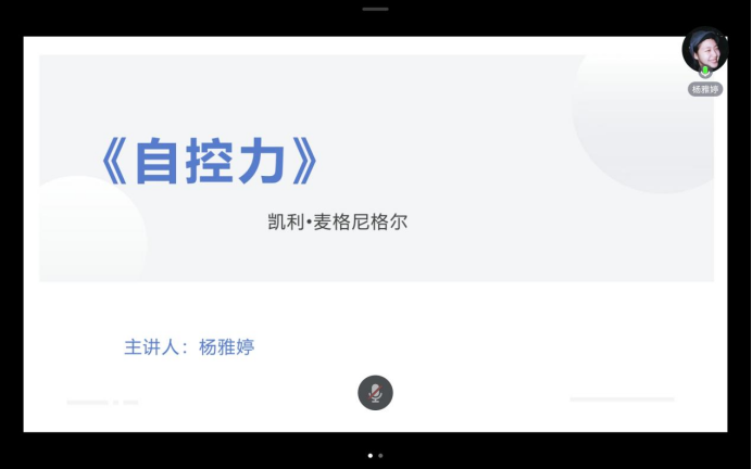 杨雅婷同学分享了凯利·麦格尼格尔的《自控力》)