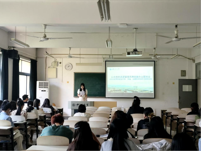 565net必赢公共信息资源管理系跨级主题班会于2024年6月5日14:00在2号教学楼2306教室召开,此次主题班会旨在搭建一个学习交流的平台,让2020级图书馆学档案学专业优秀本科毕业生代表分享他们的升学、深造、出国和本科学习的宝贵经验,为在座的同学们提供一份宝贵的参考和借鉴。此次会议由2023级MLIS图书情报专业硕士研究生王若桢主持。