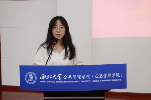 本科生毕业生代表王卓雅同学发言。王卓雅同学回忆了自己在西北大学的本科四年岁月,并对自己在这四年中的学生工作以及社会实践工作的感受进行了分享,接着表达了自己对学院温情关怀和悉心栽培的感谢,最后表达了对学院各位师生的美好祝福。