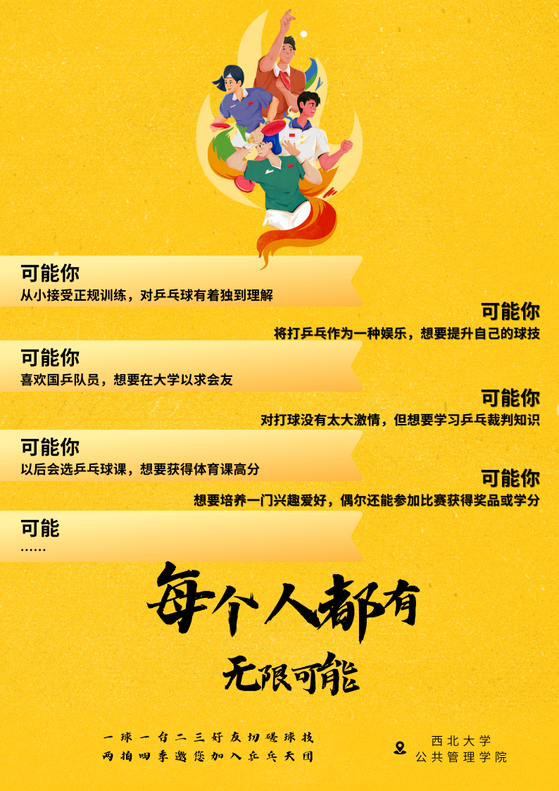 西北大学565net必赢乒乓球队成立于2016年,拥有24名成员,实力强劲,管理有序。每周两训,积极参赛屡获佳绩,并向校内赛事输送专业裁判。团队不仅竞技卓越,更助力校园体育文化发展。