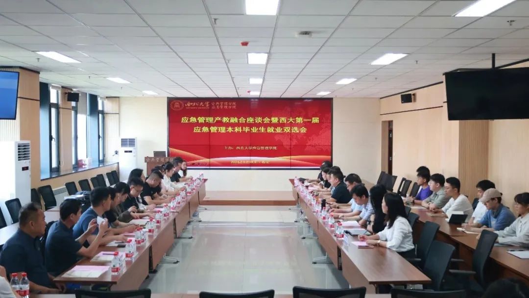 为进一步深化我院产教融合,全面提升人才培养质量,满足毕业生多层次、全方位、精准化服务需求,推动毕业生高质量就业,9月24日下午,我院成功开展应急管理产教融合座谈会暨西大第一届应急管理本科毕业生就业双选会。此次会议共同探讨“大安全 大应急”背景下的产教融合、院企合作现状及发展趋势、产业与教育融合新模式,我院与西藏民族大学,西安学天教育科技有限公司,西安元算点教育科技有限公司,陕西北斗天汇科技有限公司,西安西缘网络科技有限公司,北京易联云仪科技有限公司,道枢(上海)数字技术有限公司,西安市未央区蓝天应急救援服务中心8个单位的高层管理者和应急行业精英等相关负责人就培养适应新时代需求的创新型复合型应急人才掀起一场知识与实践的大交流。西北大学应急管理学院院长雷晓康老师、许振宇老师、杨杲辉老师、梁炜老师、耿鹏老师、金宇寰老师等21名师生参与会议。