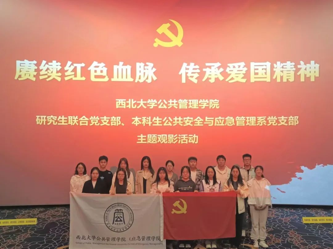 为深入学习宣传贯彻党的二十大精神,庆贺中华人民共和国成立75周年,赓续红色血脉,传承爱国精神,铭记历史、缅怀先烈、牢记担当、赓续薪火,加强支部党员党性教育,激发党员奋斗热情,2024年10月13日下午,西北大学565net必赢研究生联合党支部与本科生公共安全与应急管理系党支部共同组织开展“赓续红色血脉、传承爱国精神”主题观影党日活动,追忆革命先辈的红色岁月,感受家国情怀,汲取奋进力量。