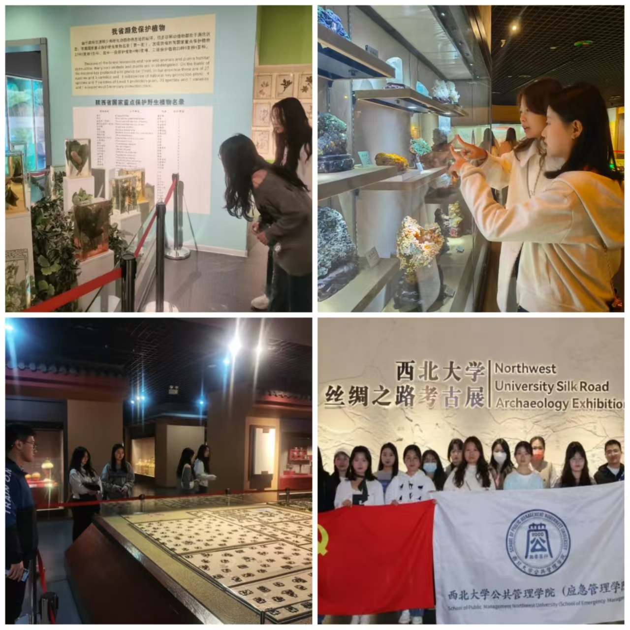 西北大学博物馆是一所依托学校优势学科和教育资源而建立的综合性博物馆,巧妙融合了人文与自然、艺术与科学、历史与现代等多个领域。党支部成员首先参观了一楼地球馆,馆中陈列了西北大学地质学科的研究成果,展示了构造地质、早期生命演化、新生代地质与环境、黄土研究等内容。通过馆中陈列的珍贵文物、藏品与标本,大家了解了地球深处的奥秘、古生物的起源,并且对中华民族文化发展与起源、沧桑历史与文化更迭有了更深刻的理解。随后来到二楼生物馆,展馆中陈列了各式各样的动植物标本以及国家级保护动物模型,党支部成员在观赏展品的同时,深刻体会到了生物多样性保护的重要性,并增强了对生态环境保护的意识。最后来到了三楼的丝绸之路博物馆,这里全面展示了西北大学在丝绸之路考古领域的卓越成就,特别是在习近平总书记的深切关怀之下,西北大学积极响应“一带一路”的伟大倡议,迅速行动组建起中亚考古队,深入中亚各国开展联合考古项目,旨在弘扬中华文明,增进各国间的文化交流与融合,为构建人类命运共同体贡献了不可或缺的力量。党支部成员在参观过程中,深切体会到了中亚考古队所秉持的“严谨治学、开拓创新”的科学探索精神和“牢记使命、以学术报效祖国”的爱国情怀。