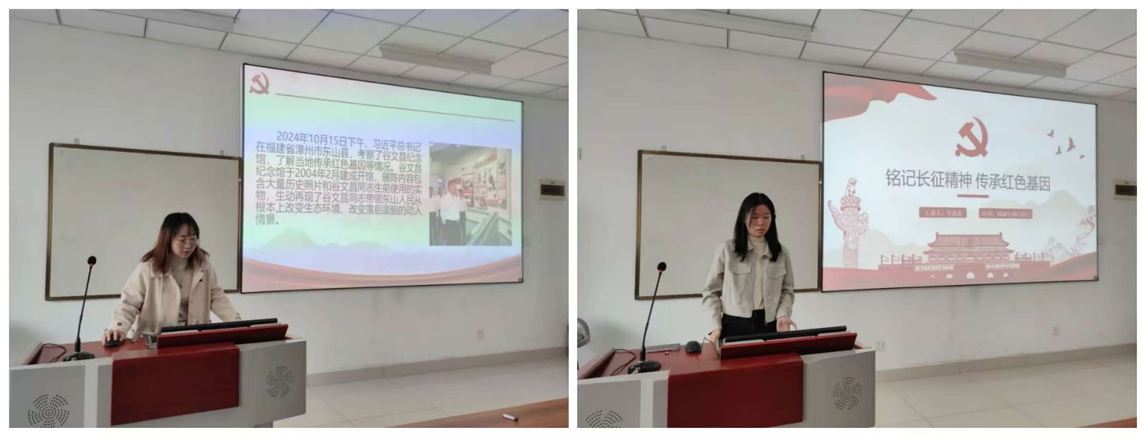 在理论学习环节,入党积极分子王佳坤、皇鑫鑫同志围绕红色基因、长征精神等主题开展理论领学。她们结合个人学习体会和生活实际,用生动的语言和鲜活的事例,引导同志们深刻理解党的初心和使命,增强了同志们的理论素养和政治觉悟。