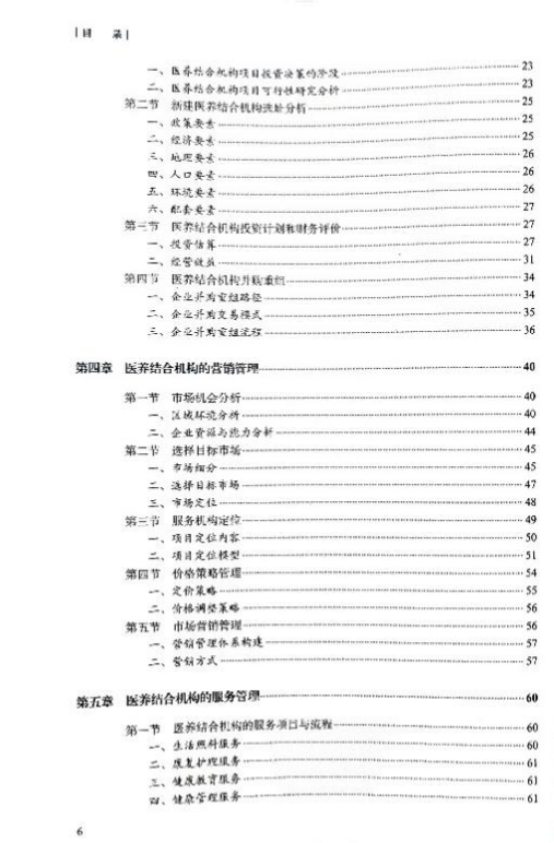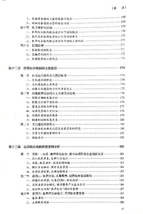 第一章“医养结合机构概述”概述了医养结合机构的概念与特征、我国医养结合模式及运营管理特点、我国医养结合机构的发展现状和发展困境,并对国外医养结合机构情况进行了简要介绍;第二章“医养结合机构相关政策法规”对医养结合机构的支持政策、管理政策及医养结合机构工作中的伦理道德进入了深入解释;第三章到第十一章“医养结合机构的投资管理”“医养结合机构的营销管理”“医养结合机构的服务管理”“医养结合机构的人力资源管理”“医养结合机构信息化管理”“医养结合机构质量管理”“财务管理”“医养结合机构的应急管理”“医养结合机构的后勤管理”对医养结合机构的各个管理环节及管理部门作了详细指导;第十二章“医养机构的文化建设”对机构文化建设的策略进行了深入指导,并给出了优秀文化建设的案例分享及经验启示;第十三章“医养结合机构典型案例分析”则选取了三个具有代表性的医养结合机构典型案例,从多方面、多维度分析了医养、康养相结合的养老模式。