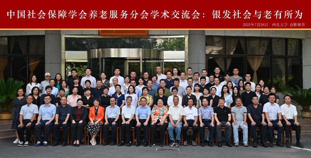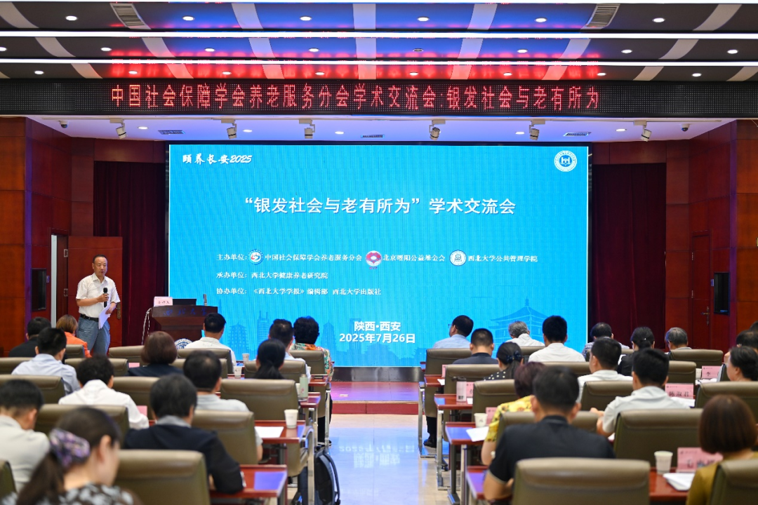 2025年7月26日,由中国社会保障学会养老服务分会、北京曜阳公益基金会、西北大学565net必赢主办,西北大学健康养老研究院承办的专题学术交流会“颐养长安2025:银发社会与老有所为”在西北大学太白校区举行。中国社会保障学会养老服务分会名誉会长江丹女士、分会会长青连斌教授、西北大学校领导在开幕式上致辞,中国社会保障学会副会长丁建定、席恒,养老服务分会二十多位常务理事参会,来自北京曜阳公益基金会、北京大学、中国人民大学、中共中央党校(国家行政学院)、浙江大学、厦门大学、华中科技大学、河南农业大学、湘潭大学、云南大学、哈尔滨商业大学、陕西省社会科学院、西北工业大学、西安财经大学、西安工程大学等高校和科研院所的专家学者,以及陕西省内养老相关行业协会和机构的业界代表等近百余人参会。