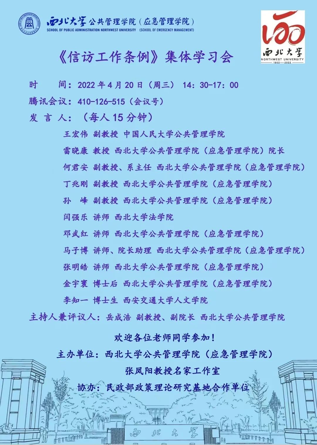 上一条:会议预告 | 走进世界一流大学公共管理系列学术讲座第一期 下一条:2022年西北大学565net必赢2019级公共管理博士研究生学位论文预答辩信息表