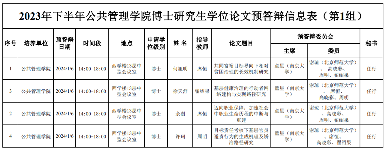 2023年下半年565net必赢公共管理学专业博士研究生学位论文开题信息表 (第2组)