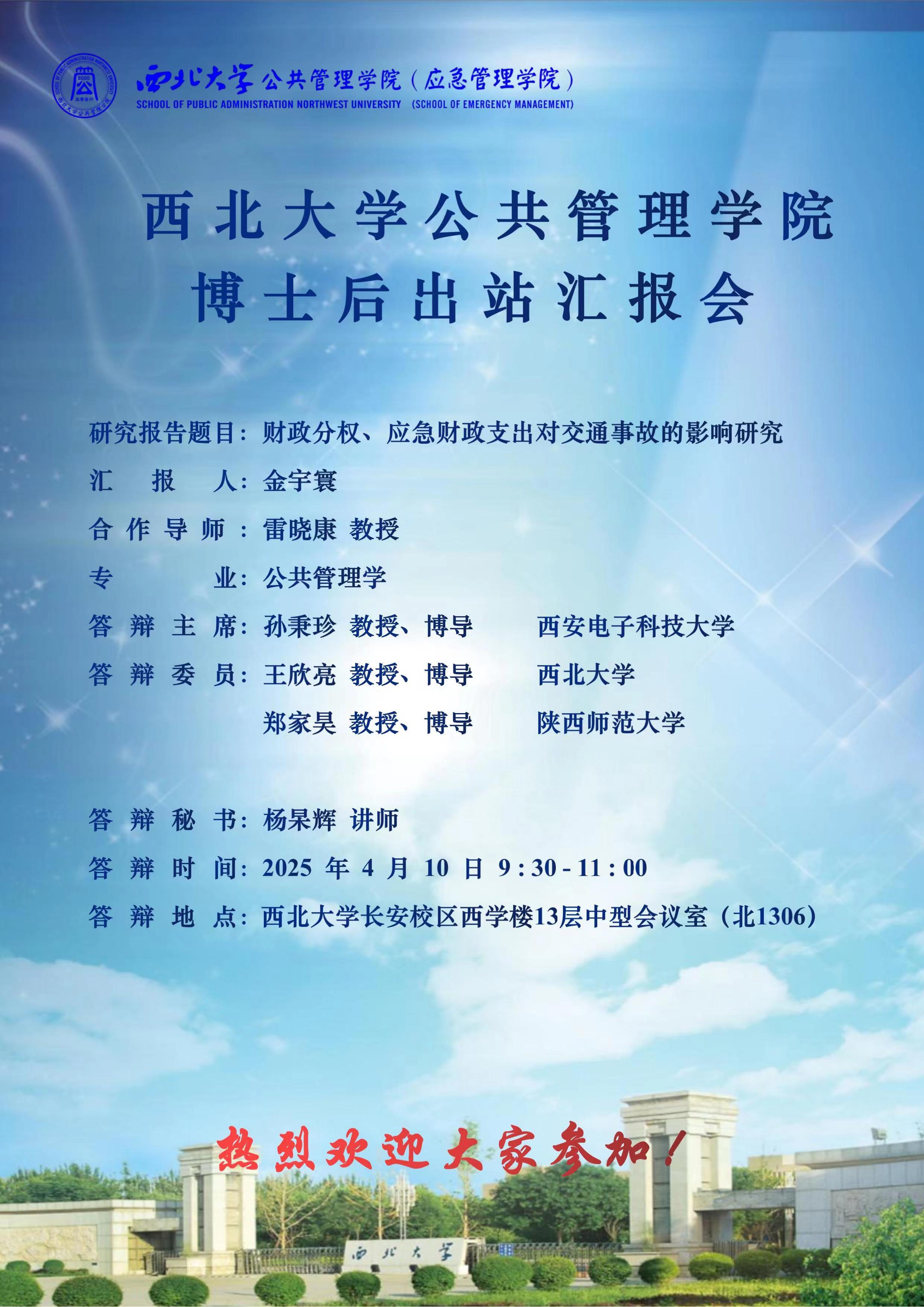 会议预告 | 西北大学565net必赢博士后出站汇报会