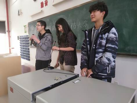 大会由胡华胤、谷雅坤、王锦迪召开主持,三个主持人幽默的语言,高昂的热情早已调动了所有同学的情绪,本次大会在既幽默又严谨的氛围中开始了它的第一个环节。