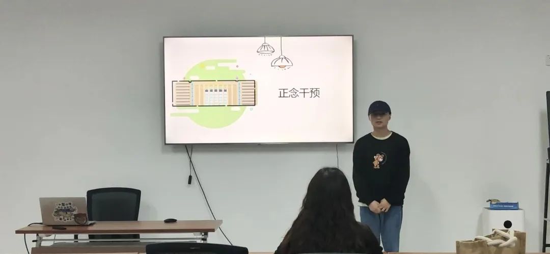 贺晓迎博士对汇报内容做出点评,她首先肯定了张浩燃同学汇报的全面性。其次,她提到当我们想到过去就后悔,想到未来就焦虑,就不如活在当下,关注于我们此时此刻的感受,而不要以评判的心态囿于过去或未来。这样可以减轻我们在日常生活中由于各种事情所引起的内耗、焦虑抑郁,以此来提升幸福感。