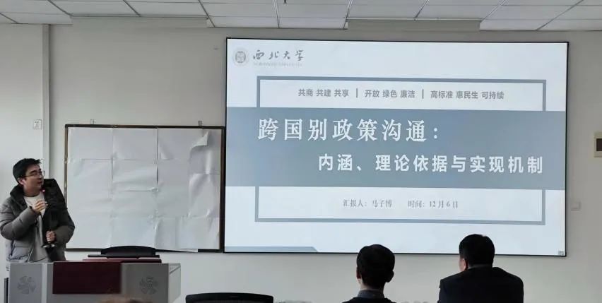 马子博讲师的研讨主题为《跨国别政策沟通:内涵、理论依据与实现机制》,主要内容包括政策沟通的背景、对政策沟通的内涵介绍、多元理论交织构塑政策共识以及跨国别政策沟通的实现机制等四个方面。主要介绍了多边政策共识达成的分析框架,同时指出要把政策沟通放在首位,因为不同国家间文化、政策的差别导致了政策沟通的难度,因此如何从政策框架下实现规则指定和规则的主导权是一个重要的问题。