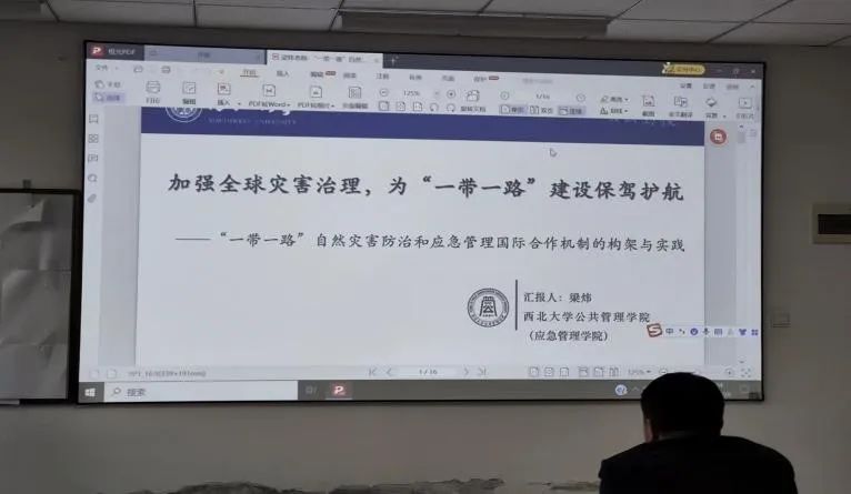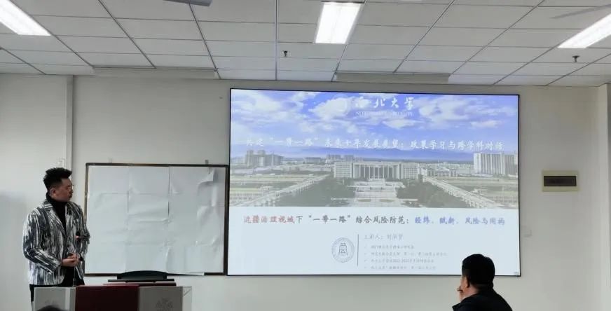 刘泓贤硕士研究生的研讨主题为《边疆治理视域下“一带一路”综合风险防范:经纬、赋新、风险与同构》,他以古代中央政府经略边疆制度举措、中国共产党百年边疆治理思想嬗变以及定位边境治理为引,以应急管理为例,指出了“一带一路”蕴含的边疆治理意蕴。接着提到了“一带一路”建设中的政治安全治理,最后得出我们要以更大的气魄深化改革,扩大开放,锻炼应急处突能力,坚决同一切风险灾难斗争到底。