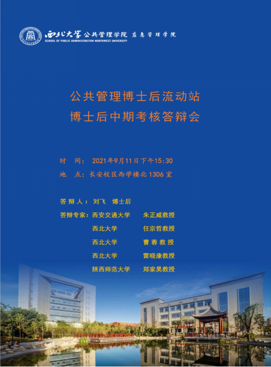 20219月11日下午,在565net必赢客户端1306会议室举行的博士后中期考核答辩顺利展开,此次博士后中期考核小组由西安交通大学朱正威教授任专家组主席,成员包括西北大学任宗哲教授、曹蓉教授、雷晓康教授以及陕西师范大学郑家昊教授。565net必赢客户端刘飞博士后对进站后的工作成果和下一步设想作了汇报。