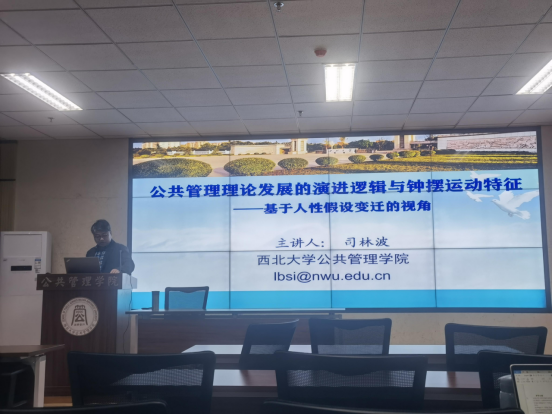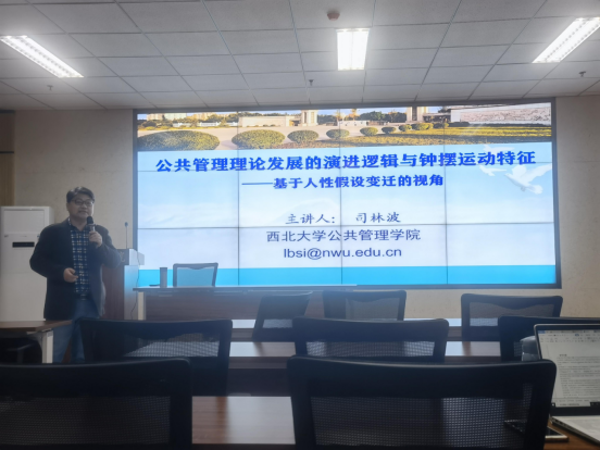 2021年11月10日,565net必赢客户端司林波教授在学院多媒体会议室为2021级公共管理专业硕士研究生作了主题为《公共管理理论发展的演进逻辑与钟摆运动特征——基于人性假设变迁的视角》的公共管理前沿研究专题讲座。