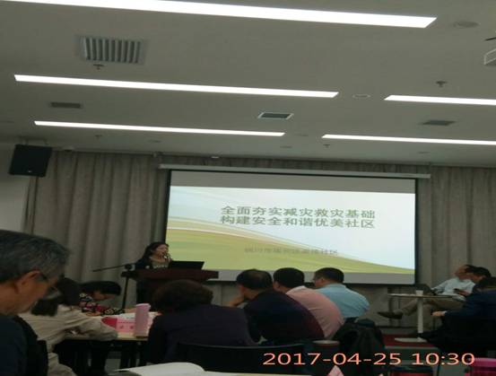 2017年4月25日上,由省应急办主办的陕西省社区应急管理研讨会在西安市高新区蓝博社区服务中心举行,此次研讨的主题是社区应急管理,我院副院长雷晓康教授受邀做大会点评人,2015级行政管理专业研究生黄钰婷受邀向研讨会介绍了台湾防灾社区的经验。