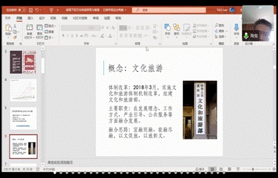 undefined陶俊副教授对“新冠疫情下的文化旅游政策与学术展望”的主题进行了思考。他指出,文化旅游的主要职责是在发展理念、工作方式、产业引导、公共服务等方面融合发展;并分享了在此次疫情下的文旅政策,具体经历了“停业——复工复产——外防输入,内防输出扩散”三个阶段。同时,列举了武汉封城下的文化旅游政策以及春节文化旅游产业的损失等,由此引出了对复产复工问题、失业问题等社会问题的思考,并作出了相关的学术展望。