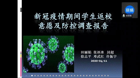 undefined田丽娟讲师分享了“新冠疫情期间学生返校医院及防控的调查报告”。她从调查起因与背景、问卷填写者基本信息、数据分析报告、思考与建议四个方面展开了讲解。对不同学生群体返校意愿及线上、线下教学效果等问题进行了研究,提出了“提高在线教学质量,打造辅之以课堂教学的线上平台”、“对线上教学的不足实施有针对性的改进政策”、“实施医院、学校、学生的联防,谨慎考量并对疫情阶段返校的病毒防控”等对策。