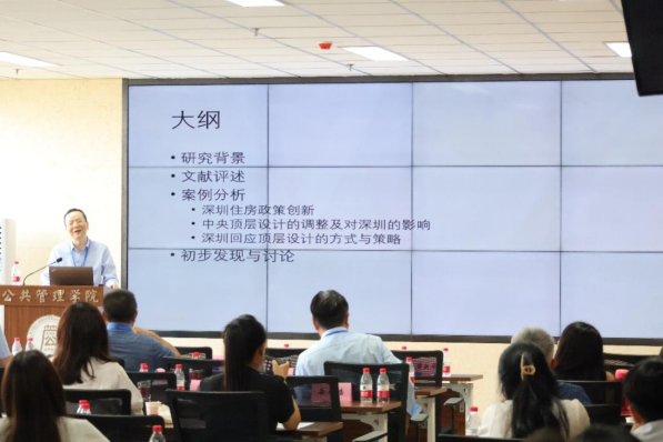 中山大学政治与公共事务管理学院朱亚鹏教授做了题为《顶层设计如何影响地方政策创新》的主题报告。他介绍了关于中国政策制定过程及其对地方创新影响的研究成果。他指出,中国的政策制定经历了从改革开放前的地方自发创新尝试到十八大后凸显顶层设计与地方创新互动的转变,在政策制定与执行中会存在灵活性与地域创新之间的矛盾。他以国家房改政策的变化和深圳房改政策的调整,论述政策制定与执行中的央地关系变化。