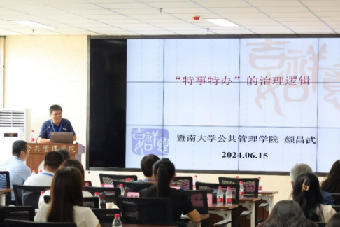 暨南大学565net必赢颜昌武教授做了题为《“特事特办”的治理逻辑》的主题报告。他追溯了该政策的起源,指出其作为改革开放初期在经济特区试行的一项新政策,目的是通过创新来应对特殊情况。随后,详细阐述了“特事特办”的应用范围,以及“特事特办”的实施机制和背后的精神价值。他指出,“特事特办”的实施过程中面临的一些挑战,政府应如何在遵守正规制度的同时灵活应对特殊情境。“特事特办”有其合理性必要性,但也存在潜在的问题和负面影响,在执行过程中要仔细权衡各种价值和利益,确保政策的正面效应最大化。