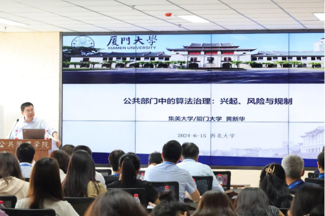 国务院学位委员会公共管理学科评议组成员、教育部高等学校公共管理类教指委委员、集美大学党委常委、副校长黄新华教授做了《公共部门中的算法治理:兴起、风险与规制》的主题报告。通过探讨算法的功能及其在教育领域的应用,强调了算法在现代社会中的重要性和普遍存在,指出了算法中心在教育研究中的关键作用及其在人才培养方面的优势。他指出,算法技术发展给公共部门带来的机遇与挑战,一方面算法技术有利于公共部门提高治理效率和质量,但同时也可能存在由专业性强、信息不对称等导致的问责机制和透明度问题,因此需要强调制定相应制度和框架以规范算法应用的重要性。