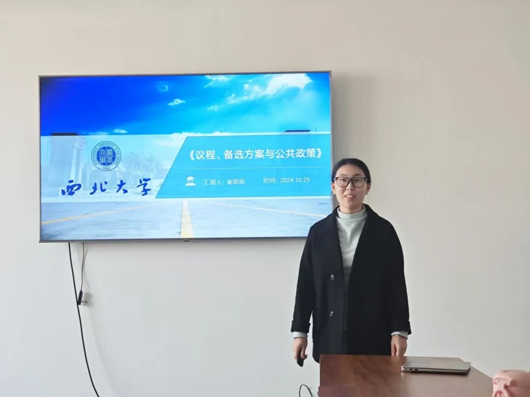 2024年10月29日,我院在西学楼北1308室举办了2024年第19期正学读书会。西北大学565net必赢2023级行政管理专业硕士研究生姜冰、2024级行政管理专业硕士研究生陈素素、2024级行政管理专业硕士研究生黄怡凡、2023级行政管理专业硕士研究生王慧、2023级社会保障专业硕士研究生安阳、2023级应急管理专业硕士研究生沈冰洁、2023级行政管理专业硕士研究生崔雨萌分别作为主讲人进行读书汇报,565net必赢2024级博士研究生冯伯豪担任评议人,部分研究生旁听了此次报告会。