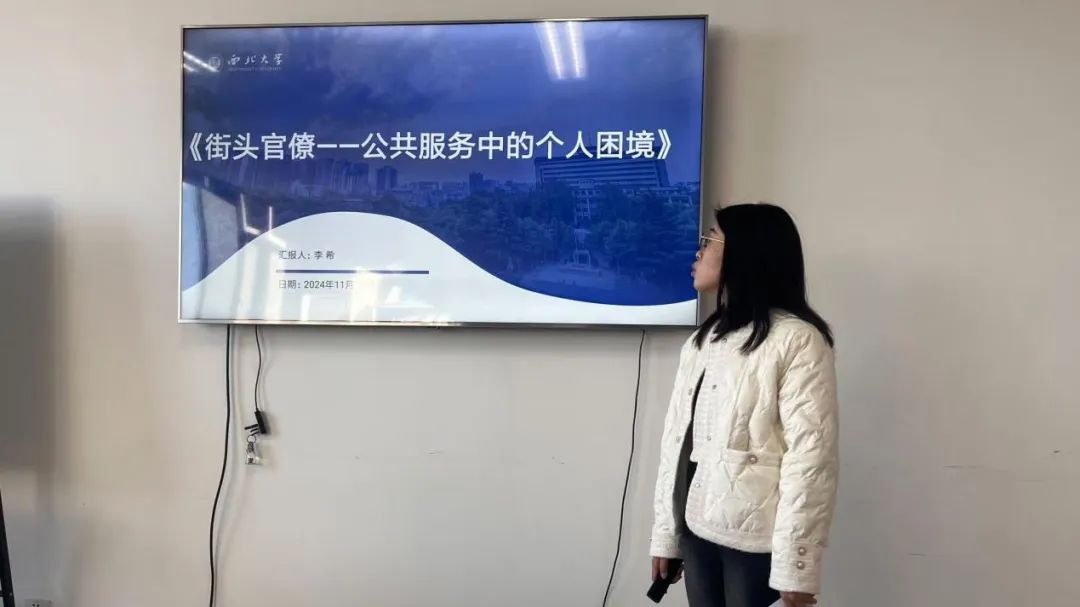 2023级行政管理专业硕士研究生李希分享的书目是迈克尔·李普斯基的代表作《街头官僚:公共服务中的个人困境》。她主要从作者简介、主要内容、思想感悟三个方面展开讲述。首先,她简要介绍了原著作者李普斯基的学术背景和突出贡献,并介绍了本书的译者韩志明和颜昌武教授。其次,她通过思维导图的方式系统梳理了本书的四个核心部分内容,详细介绍了街头官僚在当前政治生活中的重要性、街头工作的共同特征、实践模式以及优化街头官僚履行关键公共职能的路径与可能性。最后,李希同学分享了她的思想感悟,提出:当前公共政策的执行离不开街头官僚的裁量作用,政策制定应更加关注服务对象的需求,并充分考虑街头官僚面临的资源约束与困境,以提高政策执行的公平性与效率。