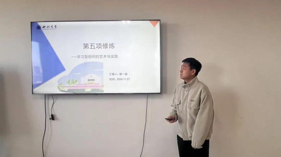 2024级图书馆学专业硕士研究生胡一涵分享了彼得·圣吉所著的《第五项修炼》一书。他从创作背景、核心概念、五项修炼的具体内容以及总结反思四个部分展开。首先,他介绍了本书的创作背景。彼得·圣吉通过对日本企业崛起的分析,揭示了学习型组织的价值。其次,他阐释了“学习型组织”的核心概念:学习型组织是一个能够持续开发创造未来能力的组织,善于适应变化的环境,并将新知识和经验转化为创新与竞争力。然后,他详细讲解了学习型组织的五项修炼。其中,系统思考被认为是建立学习型组织最重要的修炼,它要求人们以系统的眼光看待问题,理解事物彼此间的相互联系;通过自我超越,个人能够走出自己的“舒适圈”,向更高的目标进发;改善心智模式则要求个人审视、调整自己的思维模式,适应变化的环境和需求;建立共同愿景是将个人的愿景与团体的愿景相融合;团队学习则要求成员之间相互学习、分享知识,促进团体集体学习和创新能力的提升。最后,他分享了五项修炼对个人学习生活的启示。