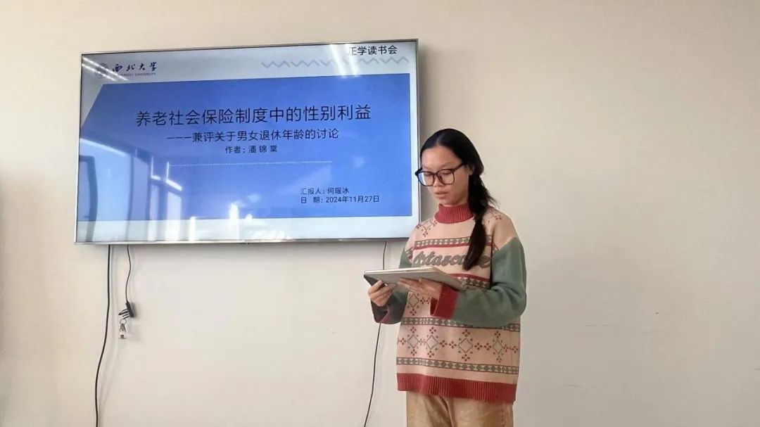 2024级社会保障专业硕士研究生何瑶冰分享了潘锦棠所著的《养老社会保险制度中的性别利益》。何瑶冰同学进行了精彩的学术汇报。本次汇报不仅展现了其对养老保险制度改革的深刻理解,也体现了其对性别平等在社会保障领域中重要性的认识。何瑶冰同学首先介绍了中国养老保险制度改革的政策背景和社会背景,强调了在经济转型和人口老龄化的双重压力下,养老保险制度面临的挑战。他详细梳理了中国养老保险制度的发展历程,从1991年的改革起步到1997年的现代养老保险制度建立,展现了中国政府在社会保障领域的努力和进步。在内容概览中,何同学着重介绍了养老保险中的性别利益问题,分析了影响两性养老金分配的关键因素,并提出了判断养老金性别分配公正性的两项原则。他的详细分析深入探讨了中国男女退休年龄与养老金分配的关系,以及国际上关于男女退休年龄的不同做法和观点。延伸思考方面,何瑶冰同学聚焦于养老保险制度在传承社会公平、应对人口老龄化、平衡劳动力市场等方面的重要作用。她提出,养老保险制度不仅是老年人生活保障的基石,更是社会稳定和发展的关键。