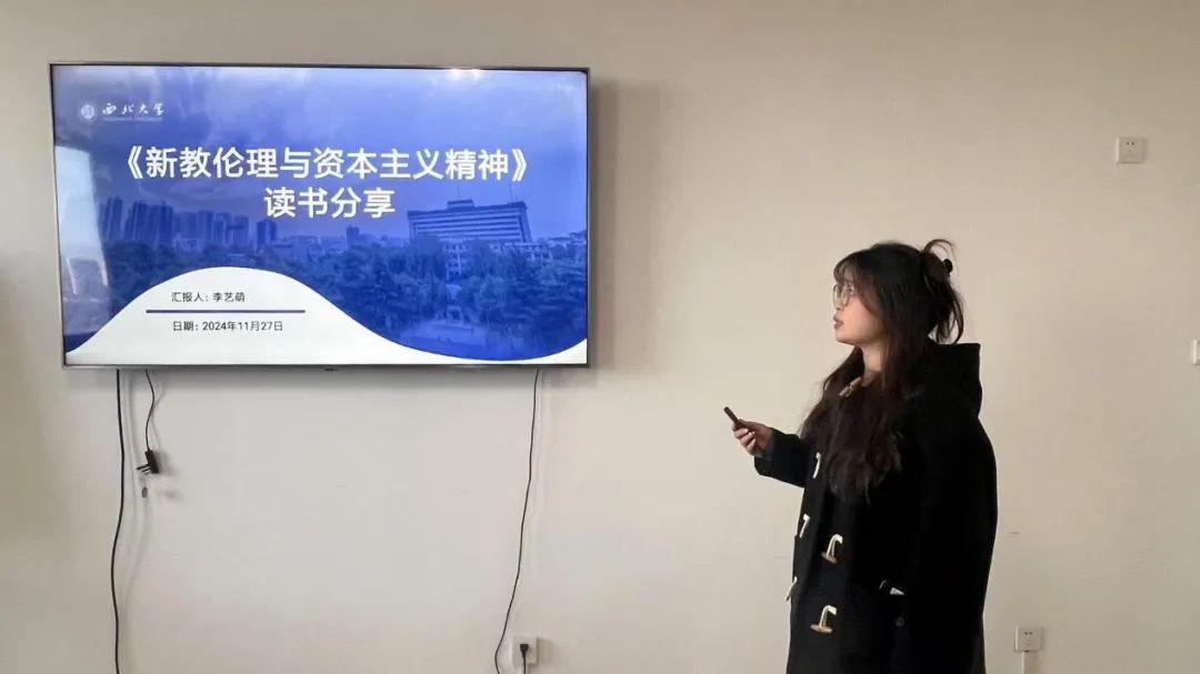 2023级行政管理专业硕士研究生李艺萌分享的书籍是马克斯·韦伯的经典著作《新教伦理与资本主义精神》。她主要从作者简介、章节梳理、核心要点和感悟启示四个方面展开。她首先介绍了韦伯的生平及学术地位,其次逐步深入探讨了书中的核心观点。她将书中章节的逻辑梳理为以下几个方面:一是西方出现理性资本主义的现象;二是社会分层中各个宗教派别的分布特点;三是什么是理性的资本主义精神;四是路德的“天职观”和加尔文宗对路德观念的发展;五是新教伦理是什么以及新教伦理促进理性资本主义发展的方式。她将新教伦理如何促进理性资本主义发展的方式概括为赋予劳动神圣意义、鼓励积累和再投资、培养理性和自律精神、为追求利润提供道德正当性四个方面。最后,她还结合了中国社会的实际情况,对韦伯的研究进行了感悟和反思。