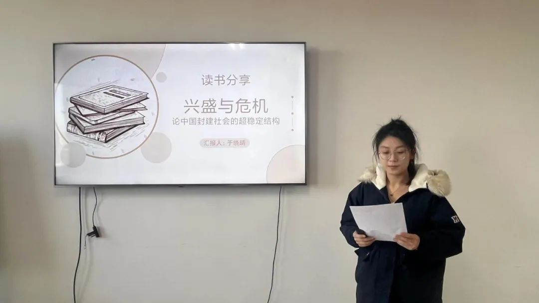 2023级社会保障专业硕士研究生于晓晴分享的书籍是《兴盛与危机:论中国封建社会的超稳定结构》,她通过作者简介、内容概览及个人读后感三个维度,向大家展示了该书的独特之处。她首先提及了该书作者——知名史学家金观涛与刘青峰,简述了他们的学术成就与贡献。接着,于晓晴对书中的核心章节进行了总结,包括中国封建社会的持续机制、特有的宗法一体化结构及“超稳定系统”理论。在分享读后感时,她聚焦于书中探讨的周期性振荡调节机制,指出中国封建社会与西方国家的显著差异在于其制度结构的长期稳定与周期性政治动荡的并存,这正是“超稳定系统”理论的实际例证。她还深入剖析了周期性动荡的根源,诸如宗法一体化结构的双重性、农民起义的频繁以及外部力量的影响。