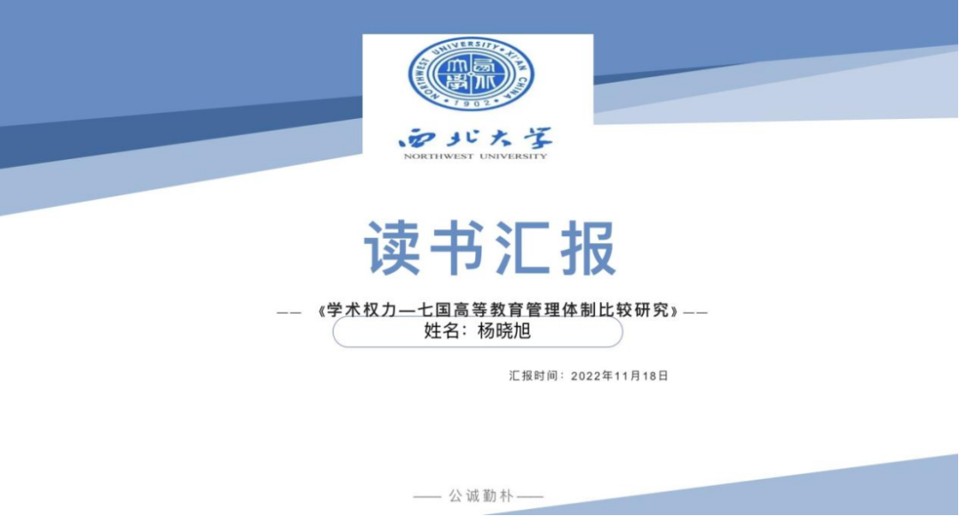 2023级行政管理专业硕士研究生杨晓旭分享的书籍是约翰范德格拉夫的《学术权力—七国高等教育管理体制比较研究》,她从本书介绍、导言部分、分享章节以及拓展思考四个部分展开。首先介绍了该书的主要内容是对联邦德国、意大利、法国、瑞典、美国、英国和日本七国高等教育的学术权力结构进行分国专题研究和比较分析。其次,阐述作者总结的七国高等教育权力结构为四种模式,欧洲模式的国家学术组织的基本结构是教授与国家官僚机构相结合;英国模式是把教授行会与院校董事以及行政管理人员的适度影响相结合的一种模式;美国模式和英国模式有着相似之处,它对高等教育的治理也是由教授行会与院校董事会及当局相结合,但在美国,教授的力量弱一些,董事会以及院校行政官员权力比较大;日本模式与前三种模式都有相似之处,可以说是前三种模式的独特混合。最后,通过分析四种模式的权力结构,引出学术权力与行政权力二元对立结构矛盾,阐明我国高等教育体系也存在学术权力和行政权力协调问题并提出优化策略。