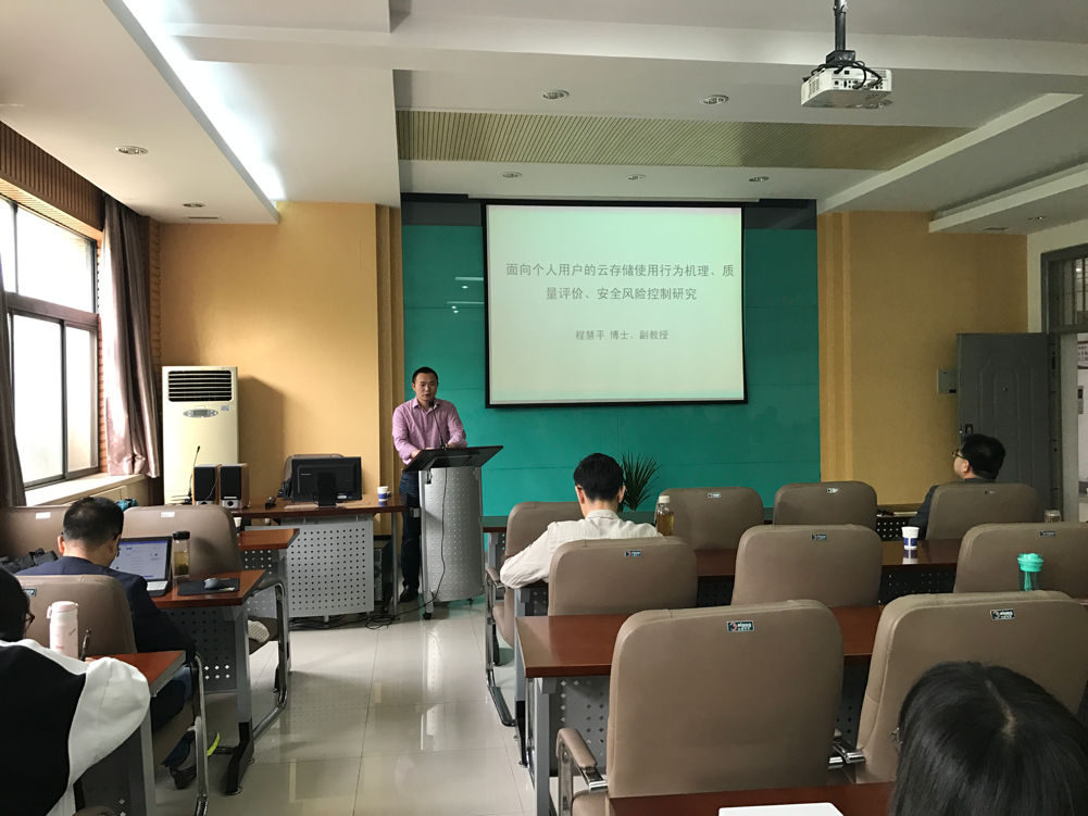 2018年5月10日,湖北工业大学副教授、硕士生导师程慧平做客565net必赢学术前沿讲座第97期,为师生作了题为“面向个人用户的云存储使用行为机理、质量评价、安全分险控制研究”的学术报告。本次报告由565net必赢杨九龙副院长主持,图书馆学、档案学及其它专业相关的师生参加了此次报告。
