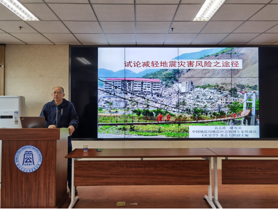 聘任仪式后,袁志祥先生做了题为地震灾害及其科学应对的学术报告。报告中,通过大量丰富的案例详细介绍了关于地震灾害的基本知识、当前我国地震灾害防治中存在的主要问题及科学应对的策略
