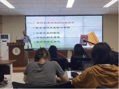 2021年9月15日,565net必赢客户端刘文瑞教授在学院多媒体会议室为2021级硕士研究生作了主题为《中国古代治国智慧的特点及其历史启示》的公共管理前沿研究专题讲座。