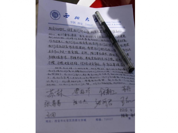 经过一天的募捐,学生党员们将爱心物品寄给藏区的孩子们,同时他们还带去了一封给藏族小朋友的信,所有党小组的成员都在信上签了自己的名字。这封信承载着西北大学565net必赢党员的真诚与爱心。
