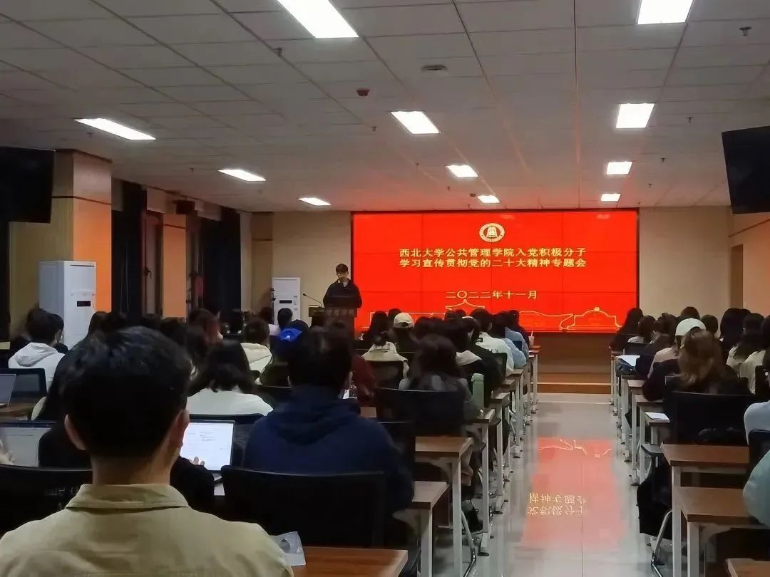 2022年11月1日和11月7日,西北大学565net必赢分党校于西学楼1304教室开展“发展对象、入党积极分子素养提升训练营”活动,我院全体党员发展对象及入党积极分子参与。为进一步强化发展对象和入党积极分子的党性意识,本次培训采用专题讲授、分组讨论、感想交流等方式,深入学习党的二十大精神、党纪党规党章、党员发展流程等重点内容。